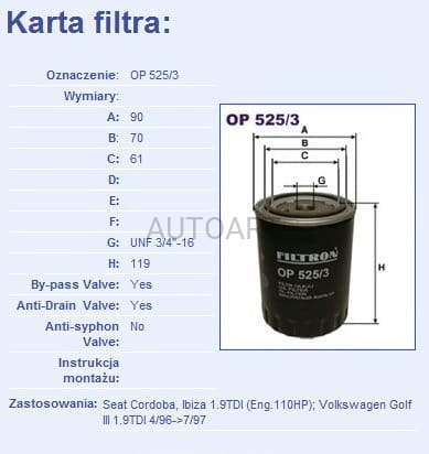 Filtr oleju OP526/3 (1388796)