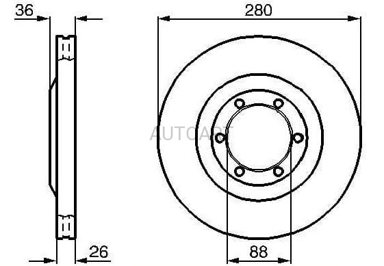 Średnica [mm]: 280 Grubość tarczy hamulcowej [mm]: 26,0 Minimalna grubość [mm]: 24,6